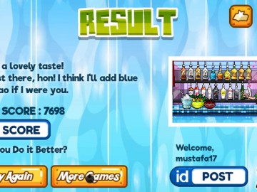 Помогите этой потрясающей леди-бармену смешивать напитки в правильных пропорциях. Вы можете выбрать с полки множество напитков, таких как водка, виски, текила и многие другие.